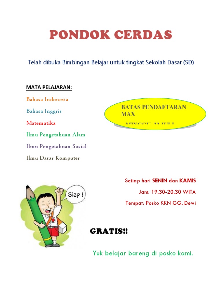 Kata Kata Promosi Bimbel Paling Simple 1. CONTOH BROSUR BIMBEL BIMBINGAN BELAJAR PRIVATKELOMPOK UNTUK TINGKAT SD MI KELAS 1- KELAS 6 UNTUK ADIK-ADIK YANG INGIN MENINGKATKAN ILMU DAN PRESTASINYA SO JANGAN KUATIR. Berikut beberapa contoh kata kata promosi toko online menggunakan kata bonus.