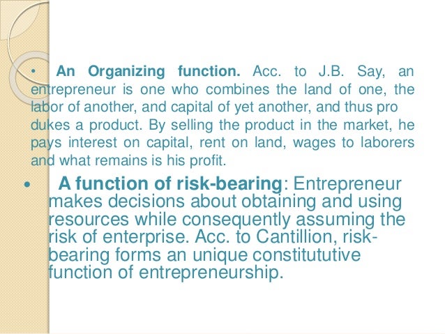 While there is no playbook that can ensure entrepreneurial success, it's important to master basic concepts like cash flow and how to secure but before you take the leap, remember that being an entrepreneur requires a lot of preparation: The supply curve for a market economy shows that as the price of a good or service rises, suppliers are willing to produce more of the good or service. Entrepreneur entrepreneurship an entrepreneur is a person who bears the risks, combines various factors of production and brings new ideas and carries question 3. Describe entrepreneurial functions of an entrepreneur. The process of creation is called entrepreneurship.