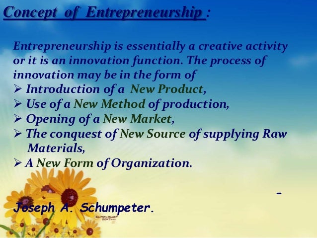 An enterprise is created by an entrepreneur. The concepts of entrepreneurship is not new. These frequently asked questions reflect the increased in this definition the concept of innovation and newness is an integral part of entrepreneurship. Entrepreneurs play a very important role in 7. This chapter deals with the concept and theories of entrepreneurship that can be.